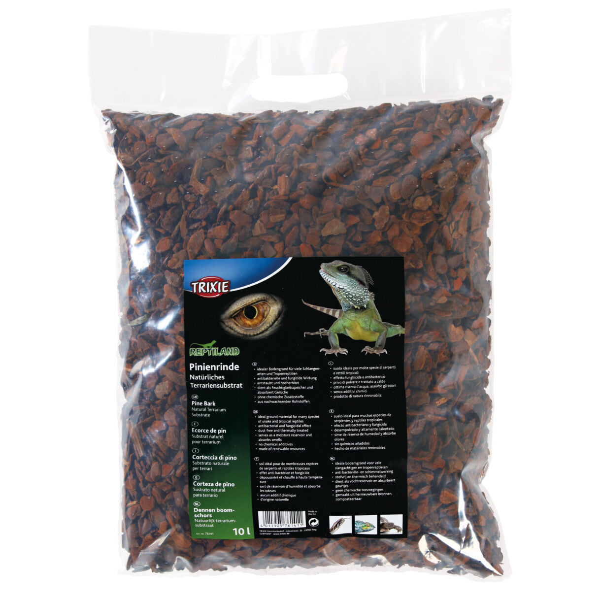 Pinienrinde ist ein natürliches Terrariensubstrat und ein optimales Bodenmaterial für Schlangen und tropische Reptilien. Sie wirkt antibakteriell und antimykotisch, ist staubfrei und wärmebehandelt. Pinienrinde nimmt Feuchtigkeit auf und absorbiert Gerüche, wodurch ein angenehmes Umfeld für Terrarientiere geschaffen wird. Das Produkt ist außerdem frei von chemischen Zusätzen, was es zu einer sicheren Wahl für die Terrarienpflege macht.