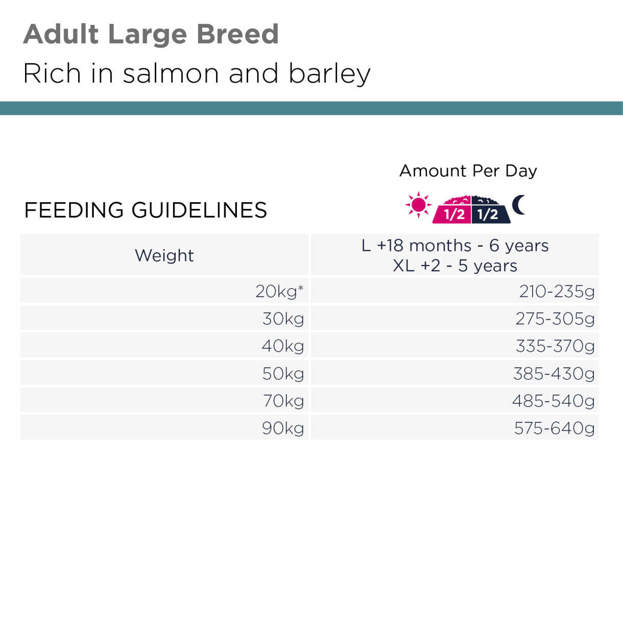 Eukanuba ist ein Alleinfuttermittel mit 100% ausgewogenem Nährstoffgehalt. Mit seinem hohen Gehalt an Lachs und Gerste ist es ideal für ausgewachsene Hunde großer Rassen wie Deutsche Schäferhunde, Labradore, Rottweiler und Golden Retriever.