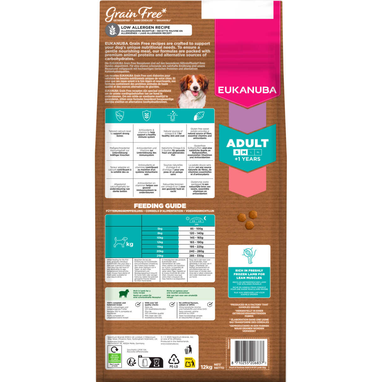 12 kg Eukanuba Hundefutter mit Lamm Small/Medium getreidefrei
