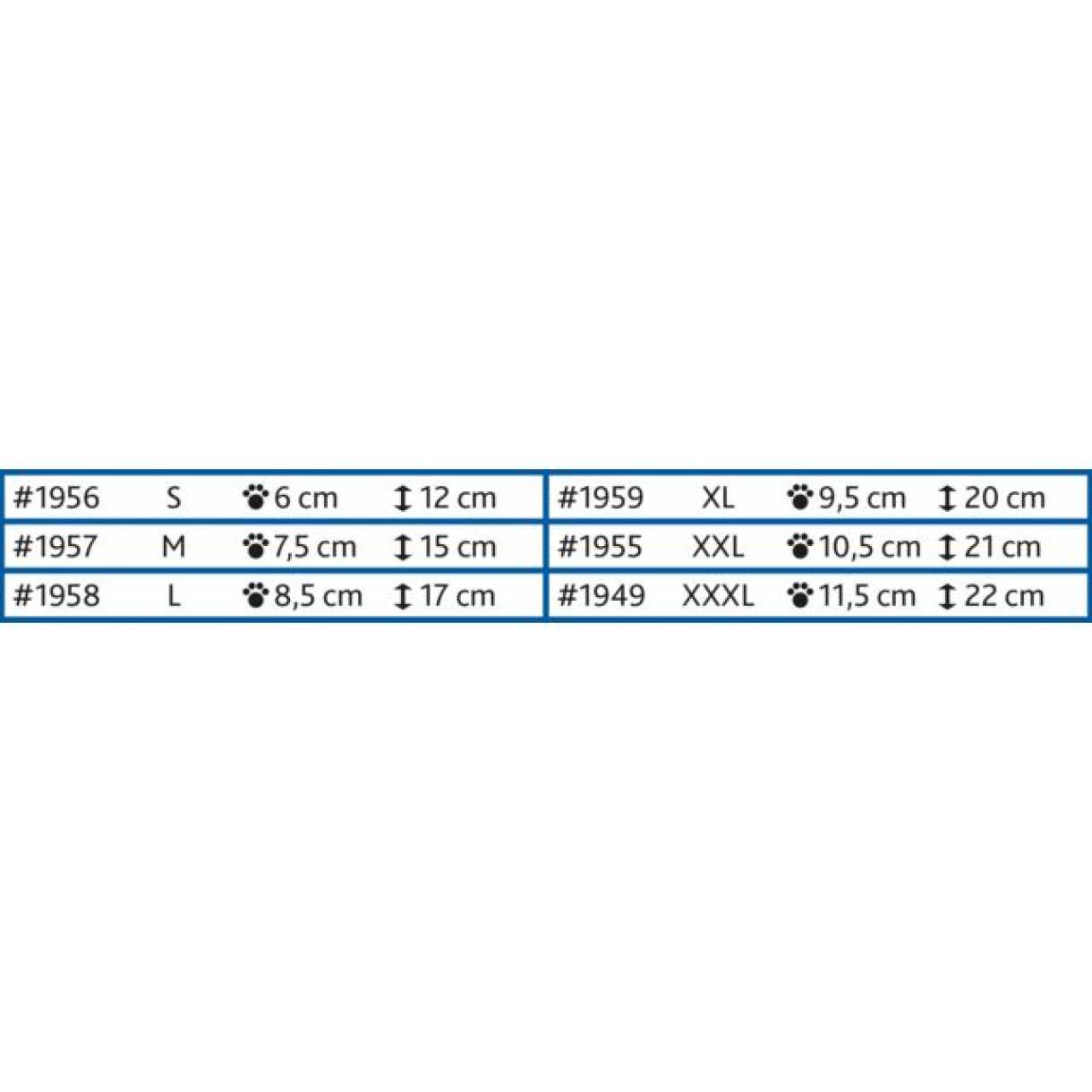 Wenn die Pfote Ihres Tieres zwischen zwei Größen liegt oder bandagiert ist, wählen Sie die größere Größe.