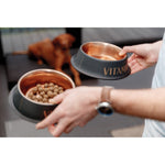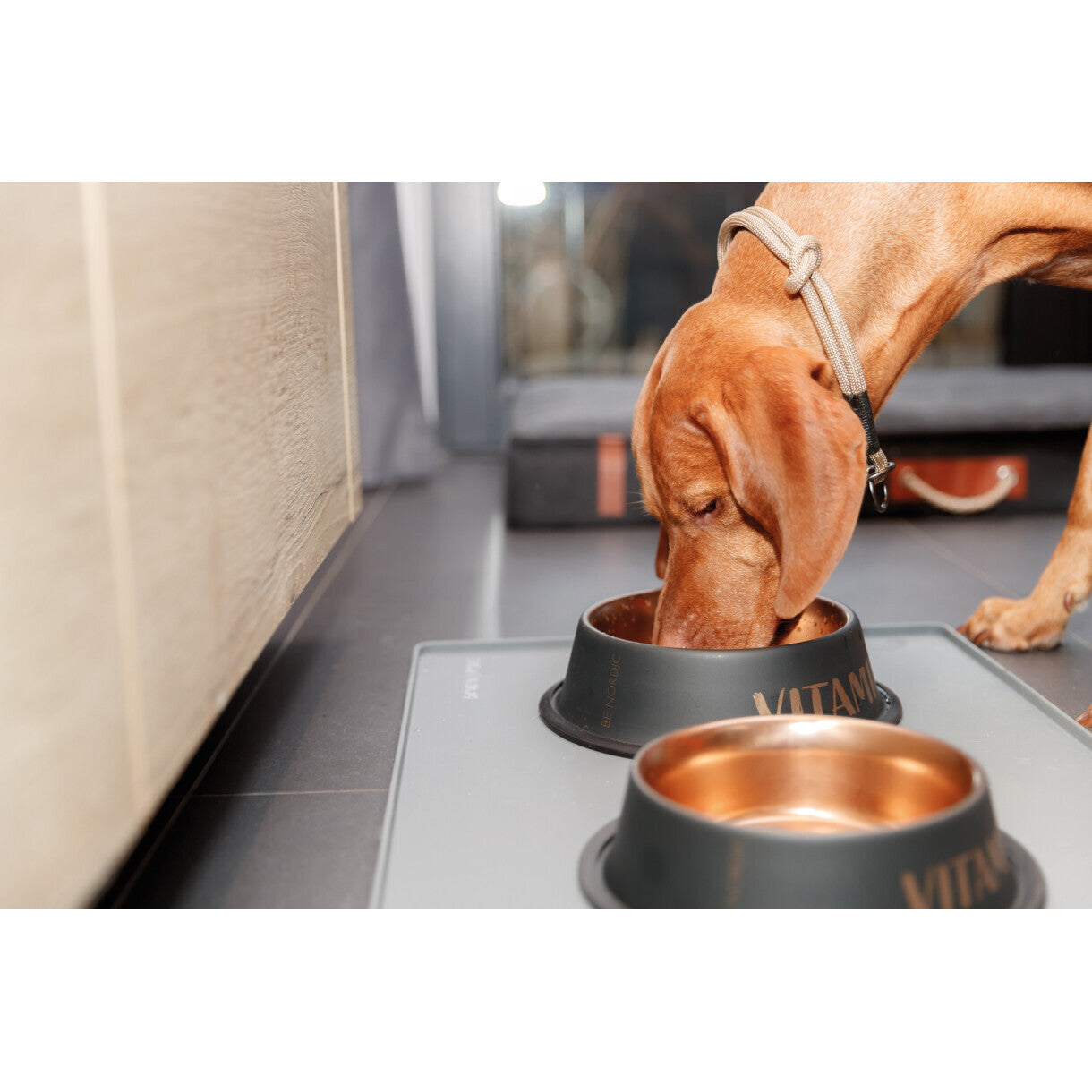 Die BE NORDIC Näpfe kombiniert Edelstahl mit einem schwarz-bronzefarbenen Finish für einen eleganten Look. Sie ist dank eines Gummirings am Boden rutschfest und sorgt für Stabilität bei der Benutzung. Die Näpfe sind lackiert, um die Haltbarkeit und Ästhetik zu verbessern. Mit seinem eleganten Design und seiner Funktionalität ist dieser Napf die ideale Lösung für die Mahlzeiten Ihres Hundes.