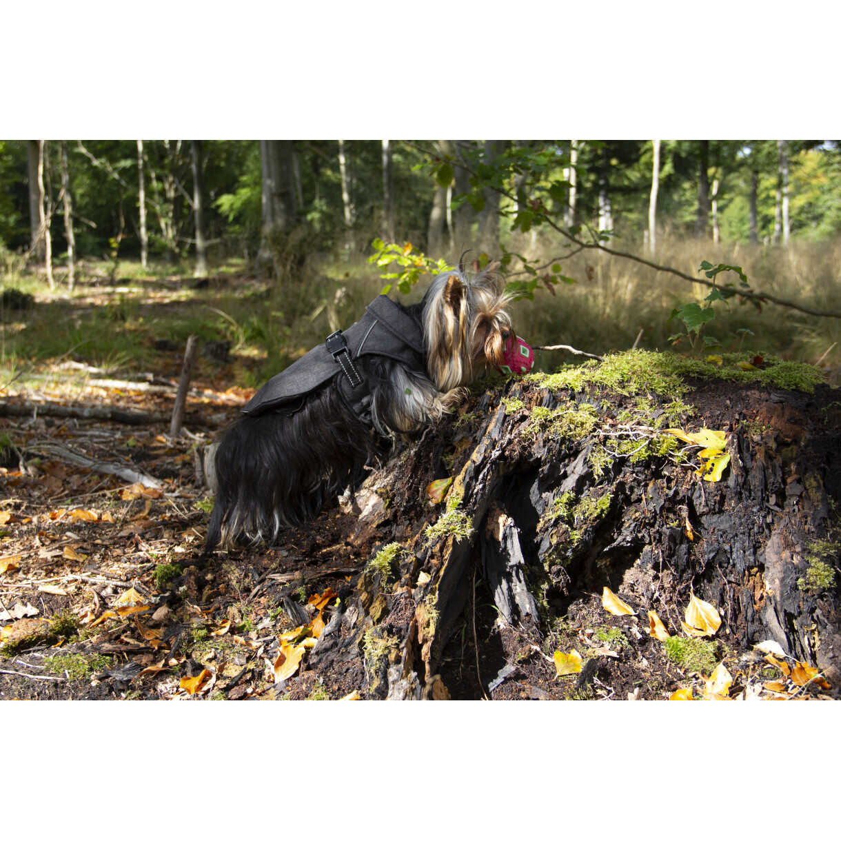 • Die praktische Öffnung am Rücken macht es einfach, die Leine zu befestigen. Das wind- und wasserdichte Material und der Reißverschluss machen die Jacke zum perfekten Allwetter-Accessoire.