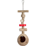 Dieses Hängespielzeug aus natürlichem Holz und Kokosnussschalen ist so konzipiert, dass es die Schaukel- und Sitzbewegungen nachahmt, die Vögel in freier Wildbahn natürlich ausführen. Das Spielzeug trägt sowohl zur körperlichen Aktivität als auch zur geistigen Stimulation bei, und die Kokosnussschale bietet dem Vogel einen sicheren und stabilen Platz zum Erkunden.