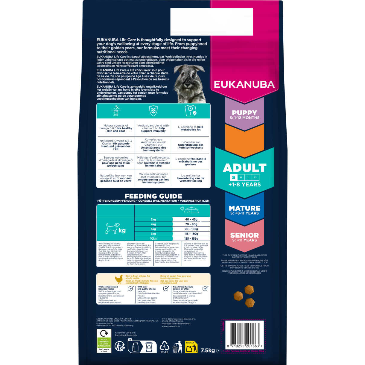 Das Futter ist zu 100% vollständig und ausgewogen. Fortschrittliche Ernährung für kleine erwachsene Hunde, die eine optimale Körperkondition und lebenslanges Wohlbefinden unterstützt.