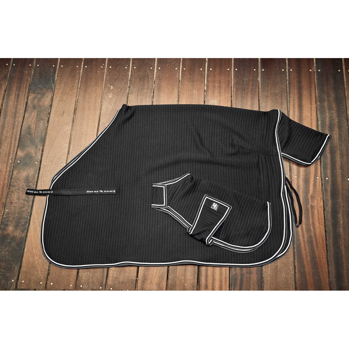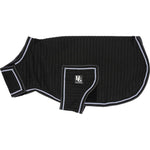 Gestrickte Cooler-Hundedecke mit Steppeffekt. Klettverschluss vorne und Klettverschluss um den Bauch. 100% Polyester