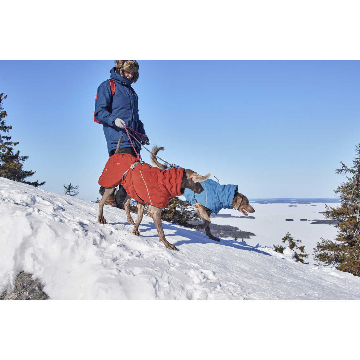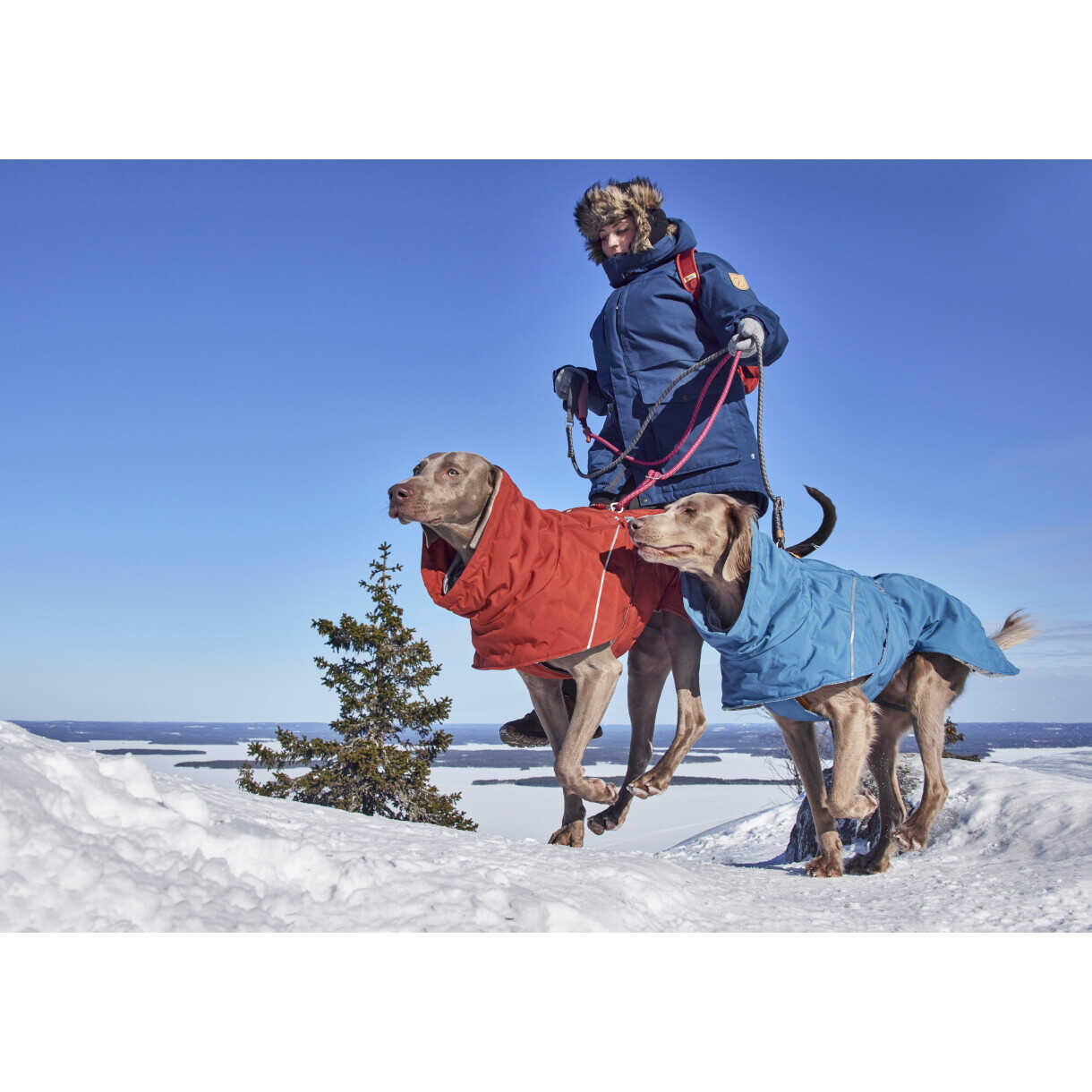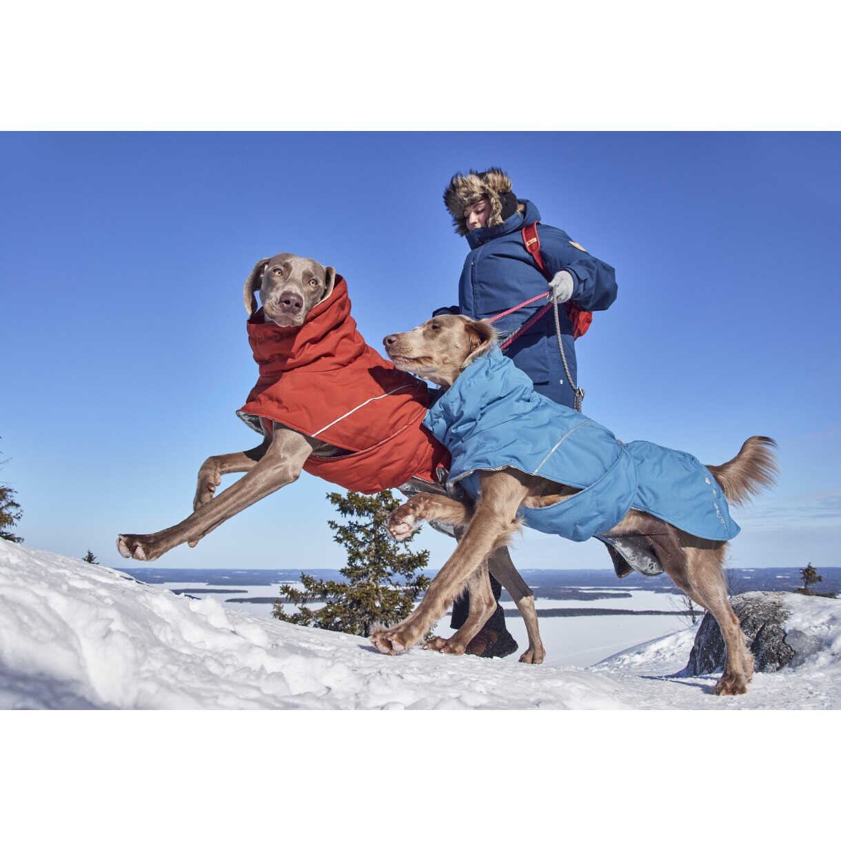 Der intelligent gestaltete lange Saum bietet zusätzliche Abdeckung, kann aber auch gekürzt und unter der Jacke verstaut und mit einem Druckknopf befestigt werden, falls gewünscht. Wie bei der Vorgängerversion befindet sich die hintere Längenverstellung an der Innenseite der Jacke, was den Außenstoff wetterfester macht und das Risiko, dass sich die Leine irgendwo verfängt, eliminiert. Für kleinere Hunde hat die 25-cm-Größe auch ein integriertes Geschirr und einen Leinenriemen, was das Leben einfacher macht und Sie noch schneller in die freie Natur bringt.