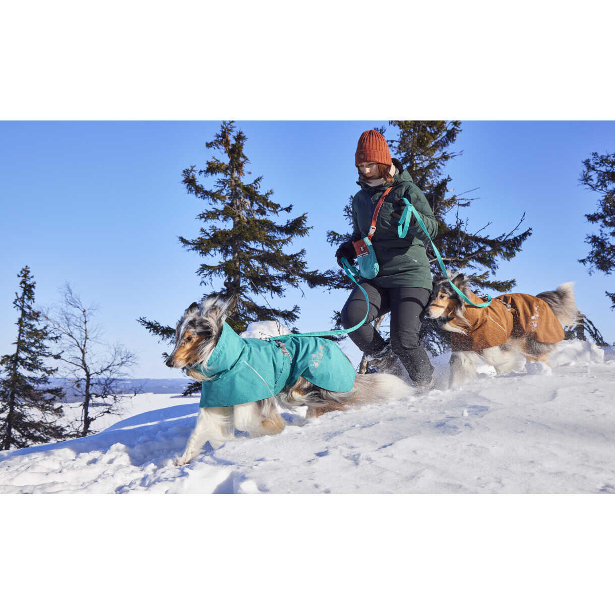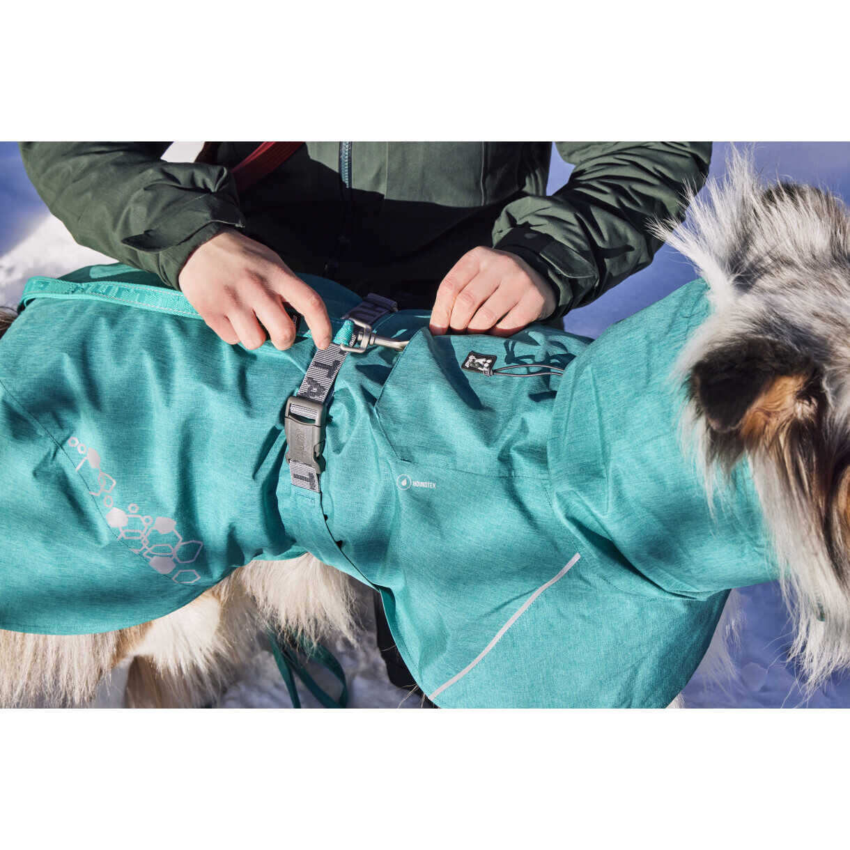 Während die Monsoon ECO robusten Schutz vor nassem Wetter bietet, ist sie dank des verstellbaren Hurtta-Gurts und der Schnellschnalle bemerkenswert einfach an- und auszuziehen. Die diskret platzierte Längenverstellung auf der Innenseite ist ein Update, das den Mantel wasserdichter macht und das Risiko ausschließt, dass sich die Leine versehentlich verheddert.