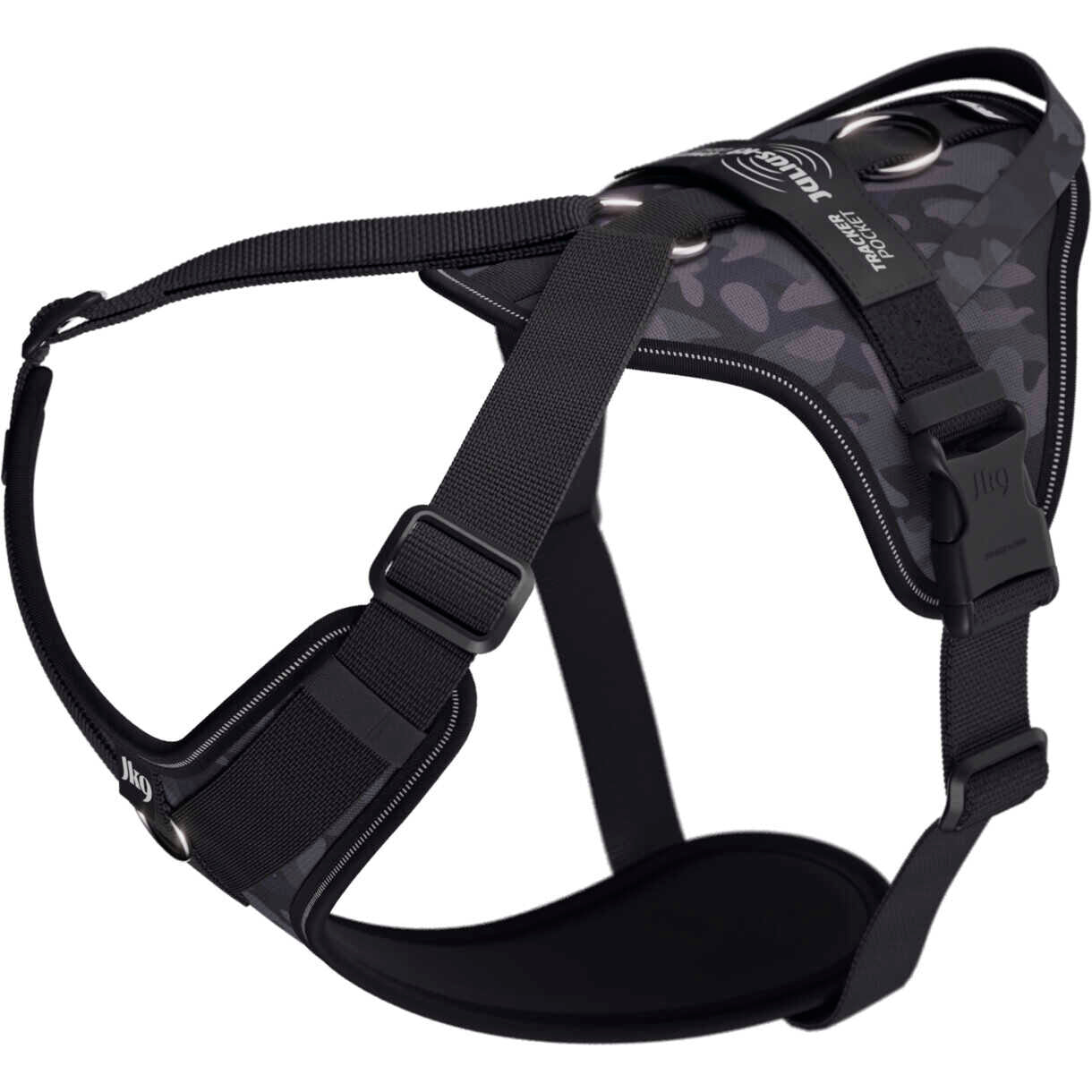 Y-Geschirr mit Duo-Flex ADAPTIVE MOVEMENT SYSTEM, integriertem "MOLLE"-System auf dem Rücken mit Griff und TRACKER HOLDER PATCH (die Taschenöffnung ist 40 mm breit, so dass sie mit Apple AirTag und ähnlich großen Geräten kompatibel ist)