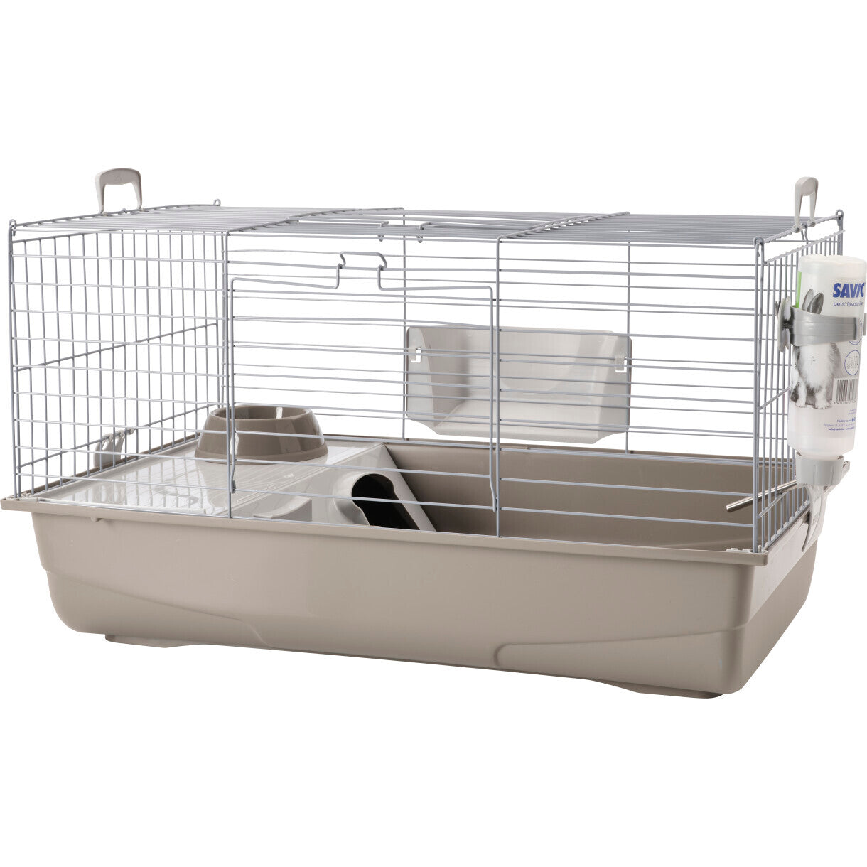 Der Käfig wird mit einem Futternapf, einer Trinkflasche und einer Heuraufe geliefert, so dass das neue Zuhause Ihres Meerschweinchens sofort einsatzbereit ist.