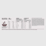 Der Energiewert beträgt 3530 kcal/kg (425 kcal pro 250ml/120g Becher). Die Kalorien werden so verteilt, dass 45% aus Proteinen, 22% aus Kohlenhydraten und 33% aus Fett stammen, um die Spitzenleistung zu unterstützen.
