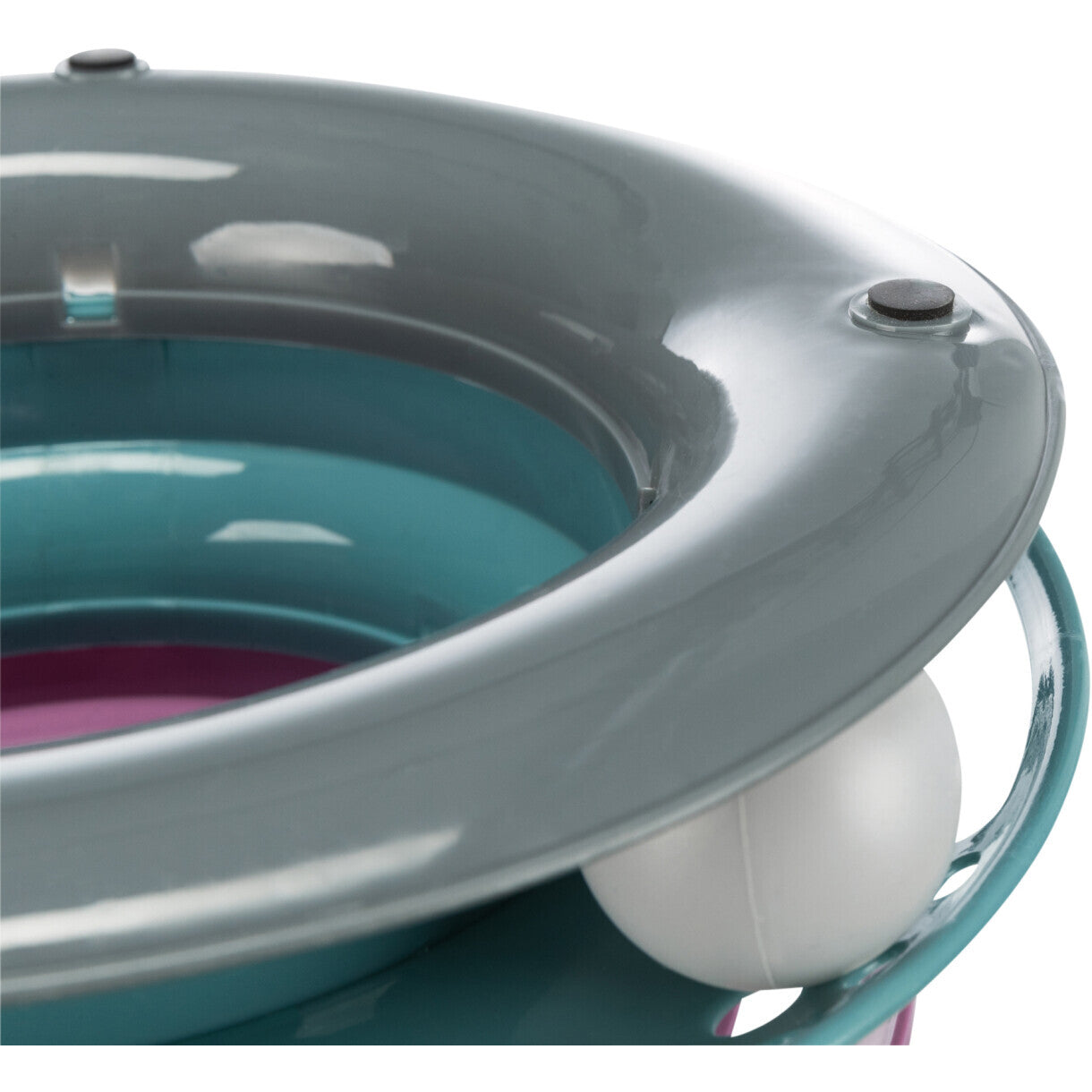Sobald die Bälle in Bewegung gesetzt werden, sausen sie im Kreis herum. Ihre Katze wird versuchen, sie durch die Öffnungen an der Seite zu fangen. Aber die Bälle behalten ihre Flugbahn bei und sind nicht zu fangen! Auf diese Weise sorgt der Spielturm für langanhaltende Unterhaltung und ist eine gute Möglichkeit, Langeweile zu bekämpfen, auch wenn Sie beispielsweise nicht zu Hause sind. Ein actionreiches Spielzeug für stundenlangen Spielspaß.