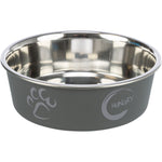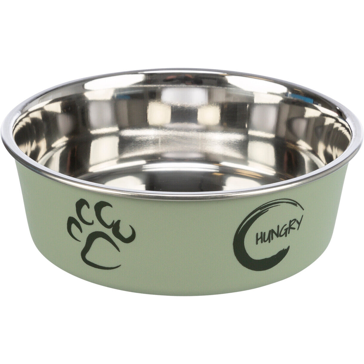 Dieses Produkt ist eine Schüssel aus rostfreiem Stahl mit einer Kunststoffbeschichtung. Sie hat ein Fassungsvermögen von 0,25 Litern und einen Durchmesser von 12 cm. Die Näpfe gibt es in verschiedenen Farben und mit unterschiedlichen Motiven. Er ist mit einem Gummiring ausgestattet, der ihn rutschfest macht und verhindert, dass er herumrutscht, wenn Ihr Haustier daraus frisst oder trinkt. Dieser Napf ist ideal für den täglichen Gebrauch zur Fütterung Ihres Haustieres und ist leicht zu reinigen und zu pflegen.