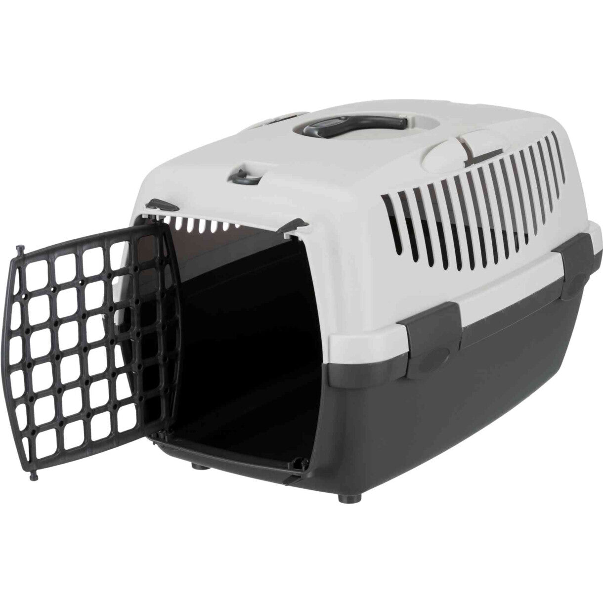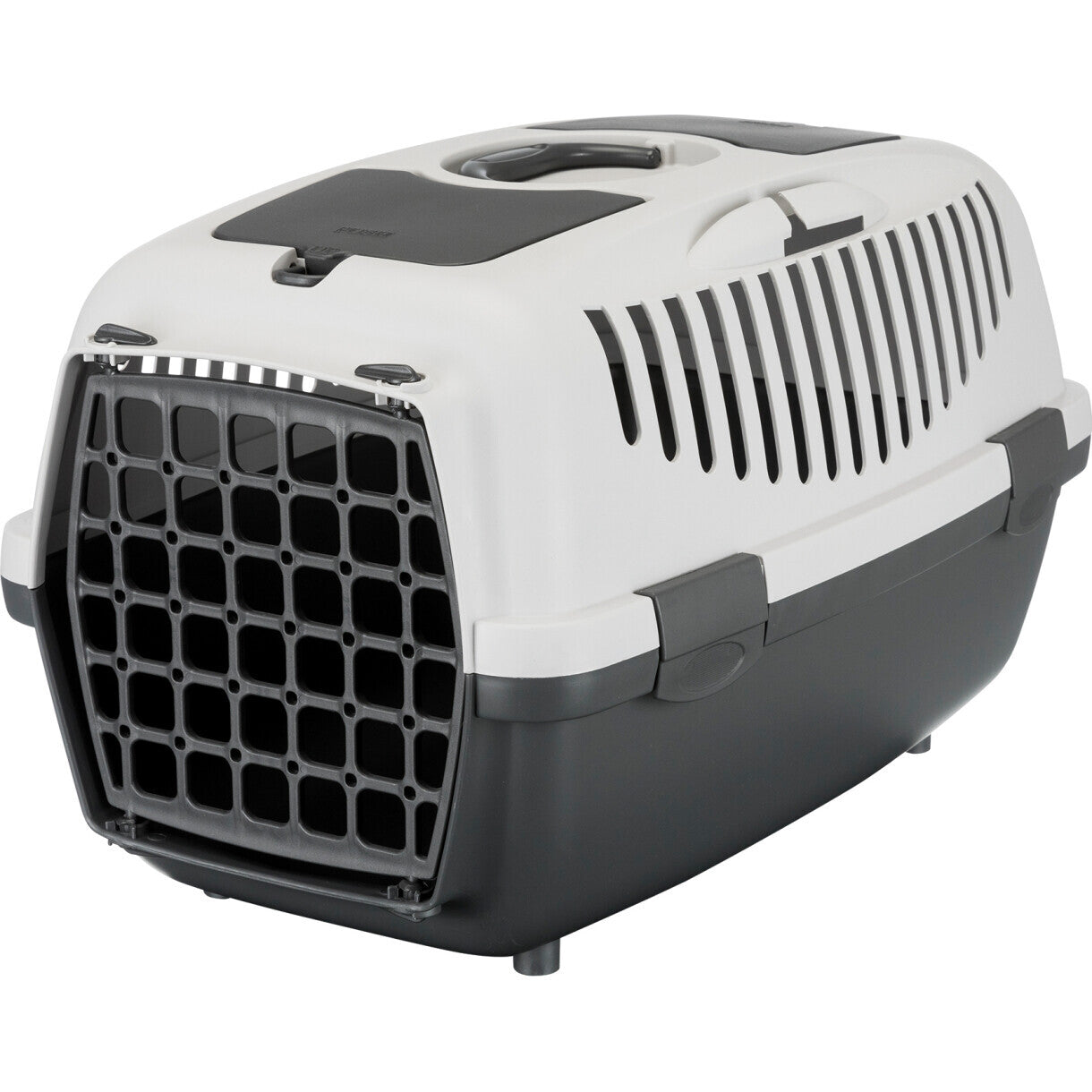 Transportbox aus Kunststoff mit Griff. Erhältlich in 2 Versionen, Capri 1 & 2. Capri 2 ist mit einem Staufach und einer Öffnung an der Oberseite erweitert. Die Öffnung ermöglicht den Körperkontakt mit dem Haustier in der Kiste. Die passende Matte für Capri 2 ist separat erhältlich (Art.-Nr. TX38872)