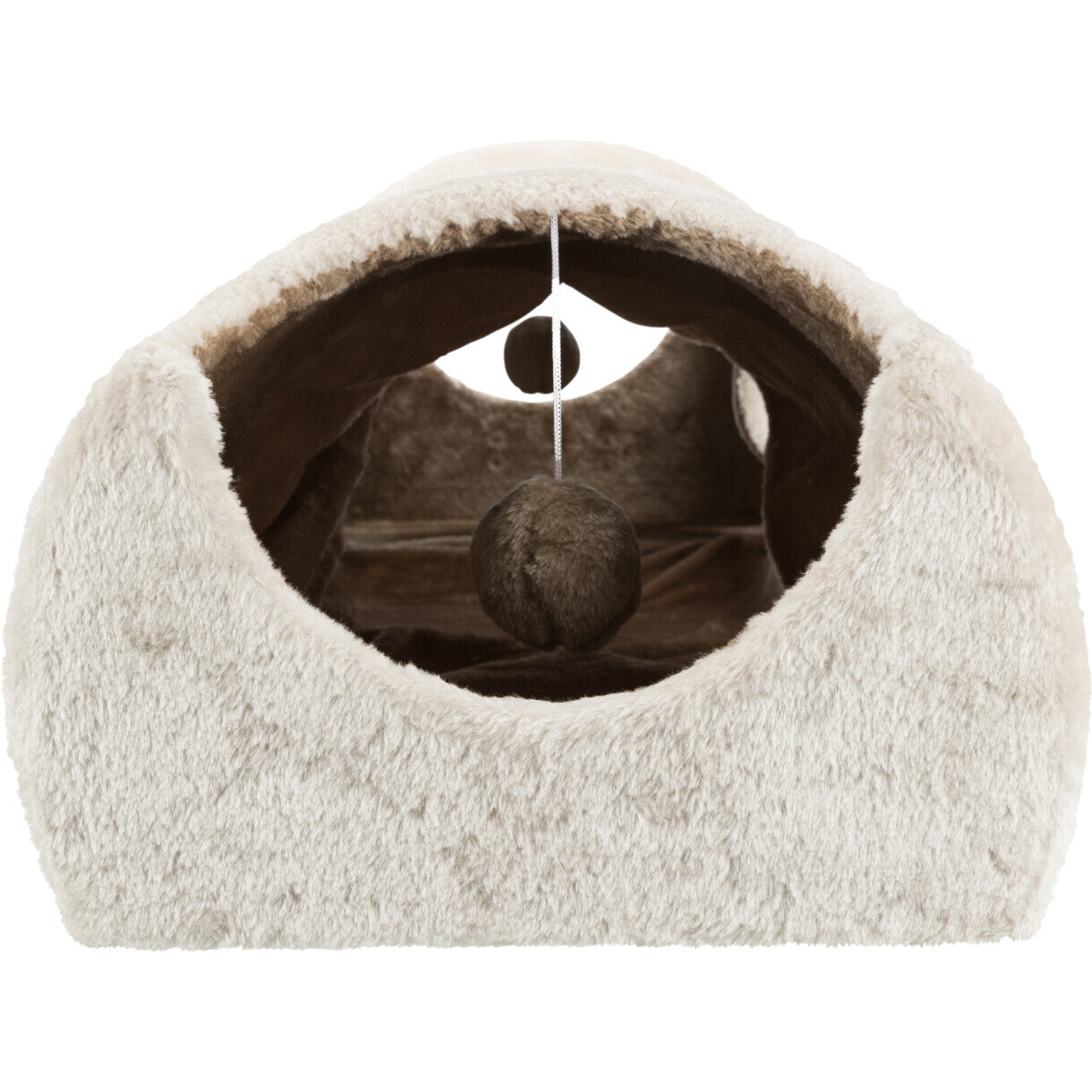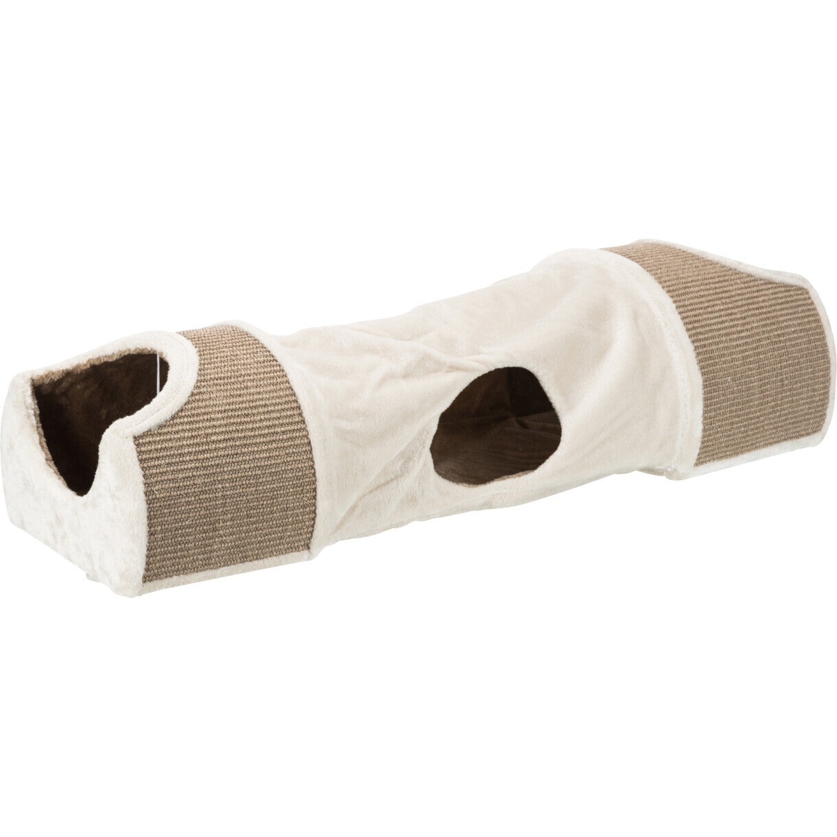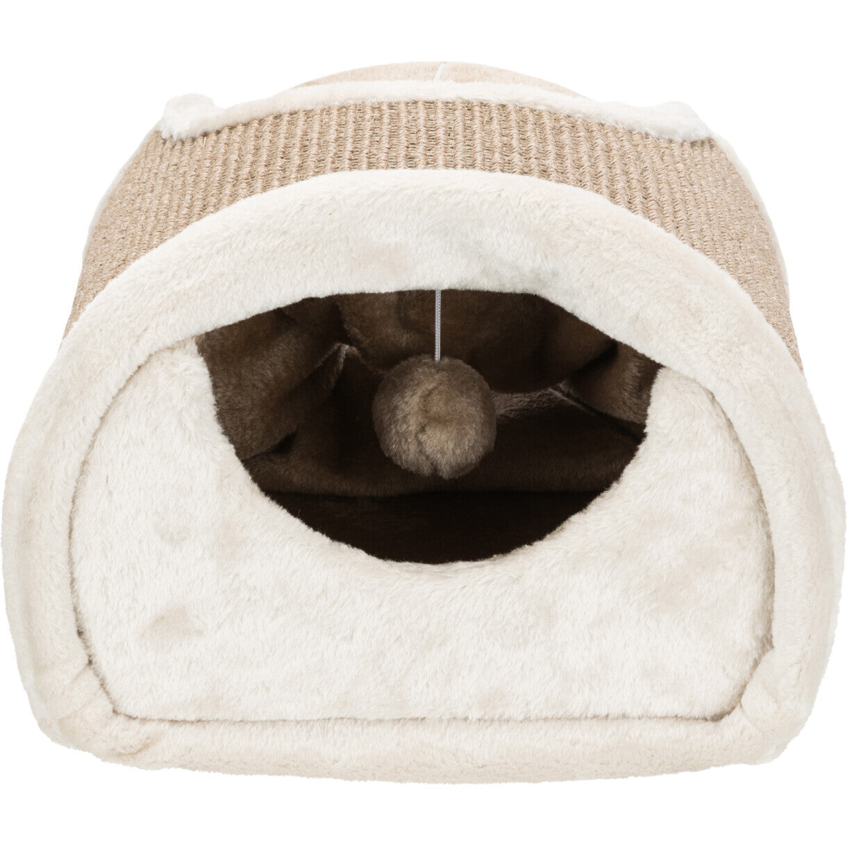 Dieser Tunnel mit Höhle ist der ultimative kombinierte Spiel- und Ruheplatz für Ihre Katze. Hergestellt aus strapazierfähigem Sisal und weichem Plüsch (Polyester), schafft er eine komfortable und anregende Atmosphäre. Zwei Höhlen mit Sisalkratzflächen ermöglichen es Ihrer Katze, ihre Krallen zu pflegen und zu erkunden. Die gesamte Höhle ist mit Plüsch überzogen, was für zusätzlichen Komfort und Gemütlichkeit sorgt. Mit dem in die Höhle integrierten Leinen-Spielzeug wird der Jagdinstinkt Ihrer Katze angeregt. Dieses multifunktionale Katzenmöbel bietet Ihrer Katze ein angenehmes Spiel- und Ruheerlebnis an einem einzigen Ort.