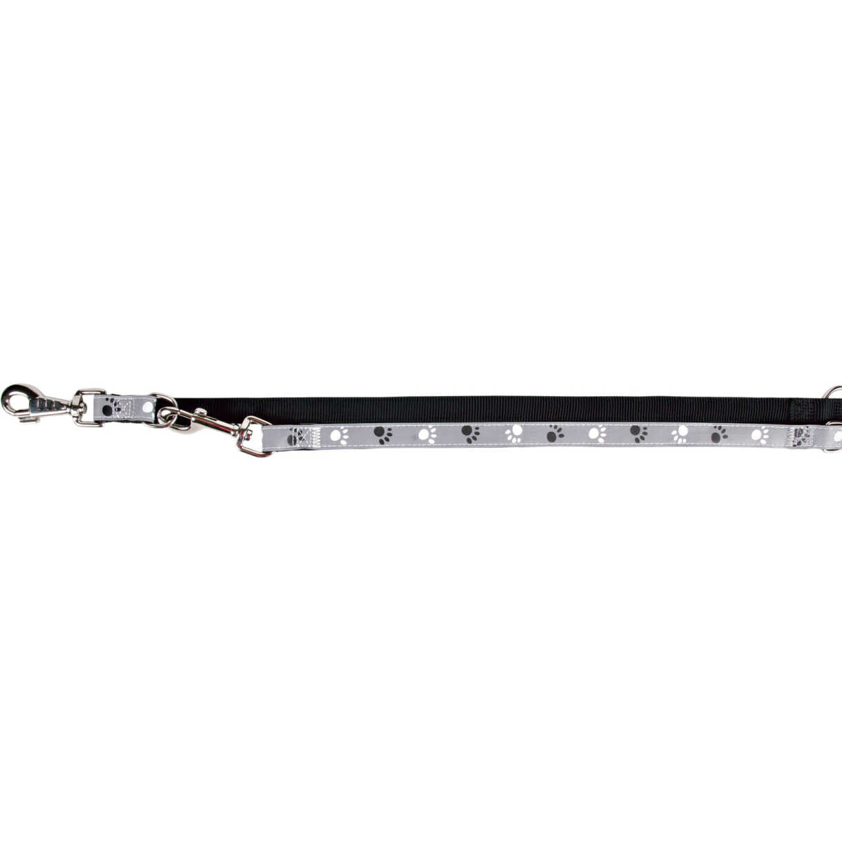 Die silberne reflektierende Leine lässt sich dreifach verstellen und ist aus robustem und langlebigem Nylon gefertigt. Die Kunststoff-Oberseite reflektiert das Licht und ist schon von weitem sichtbar.