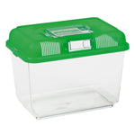Die Transport- und Futterbox ist ideal für den Transport, die Zucht und die Fütterung von Reptilien und Amphibien. Sie ist für die Haltung von Futtertieren geeignet und kann auch als vorübergehende Quarantänezone dienen. Die Box hat einen Deckel mit Griff und eine Öffnung für die Fütterung. Außerdem gibt es eine zusätzliche Seitentür für die Fütterung, wenn die Boxen gestapelt sind. Sie besteht aus Kunststoff und ist daher leicht zu reinigen und zu pflegen.